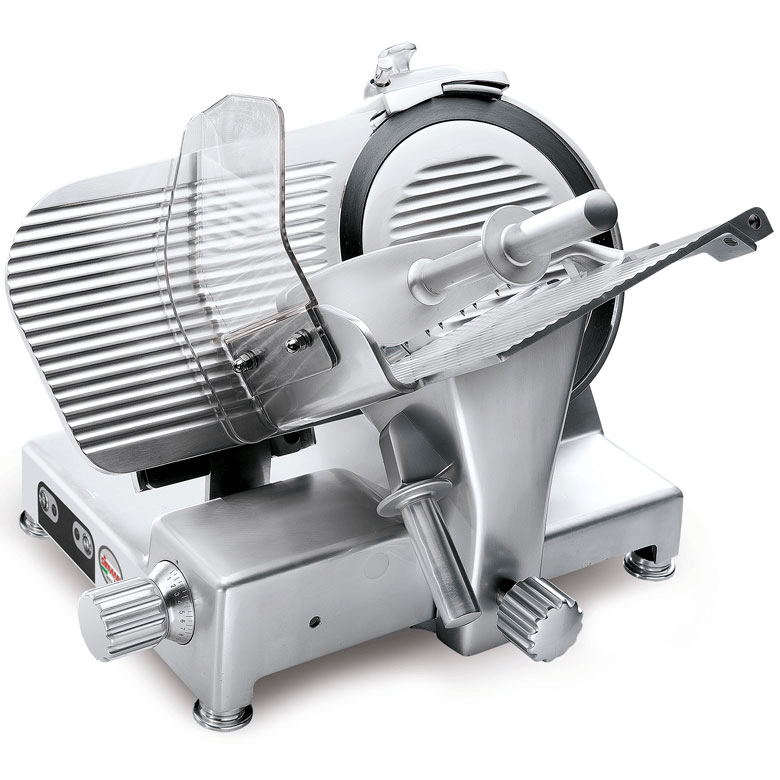 Affettatrici a gravità, di dimensioni contenute per il banco bar, alle verticali, per carni e salumi per la cucina.