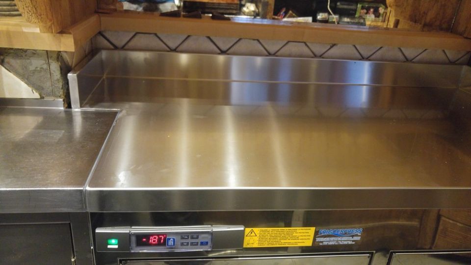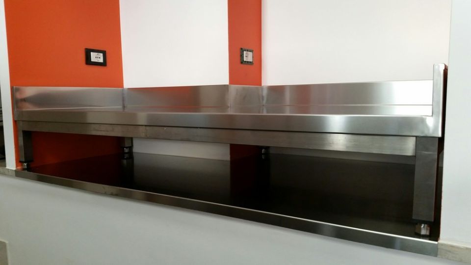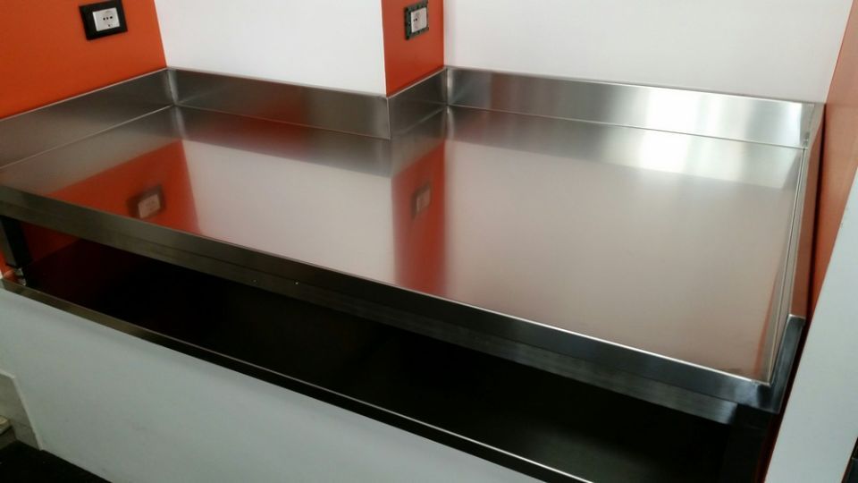 Tavolo su gambe h.250 mm. con piano sottostante, tutto in acciaio inox!