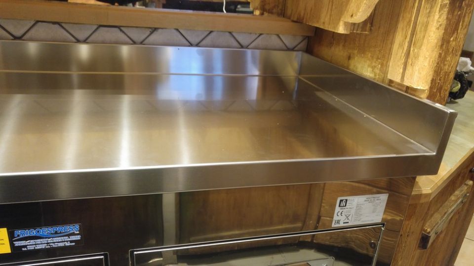 Tavoli e lavello in acciaio inox Mittel Group.
