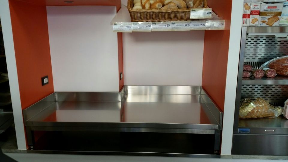 Abbiamo infine curato la sostituzione di attrezzatura datata con un nuovo banco refrigerato da 250 cm con cella inferiore di conservazione e frigorifero murale Tecfrigo.