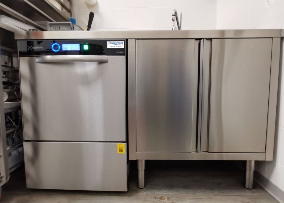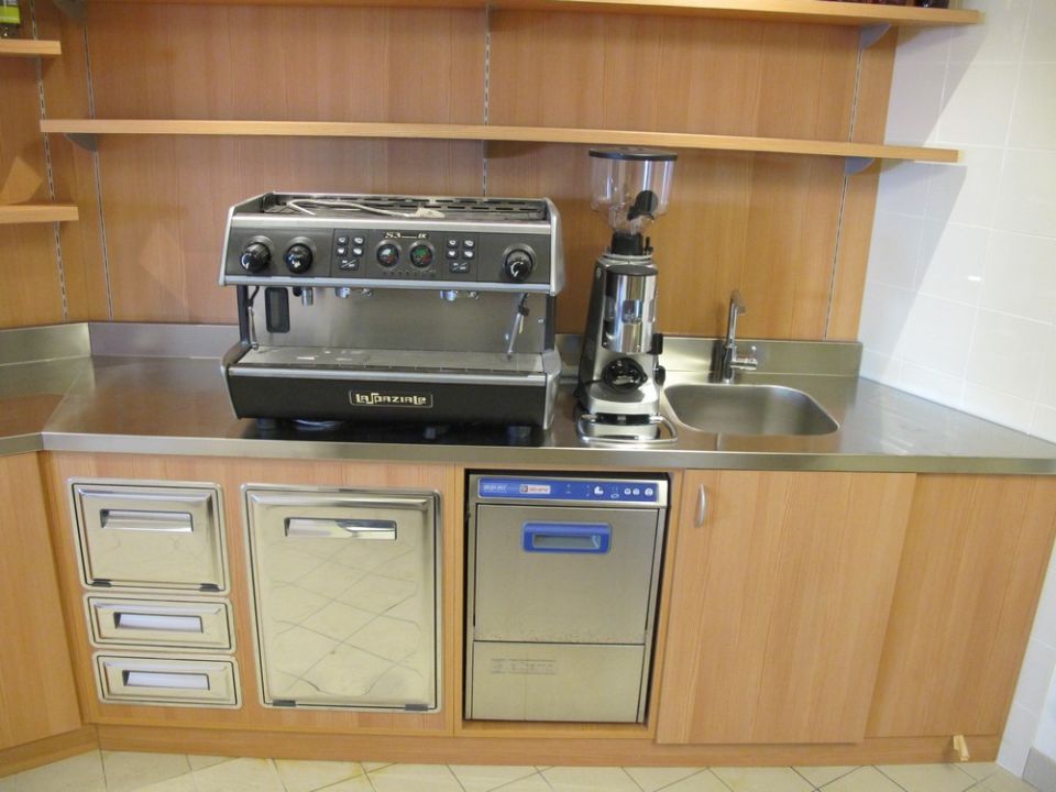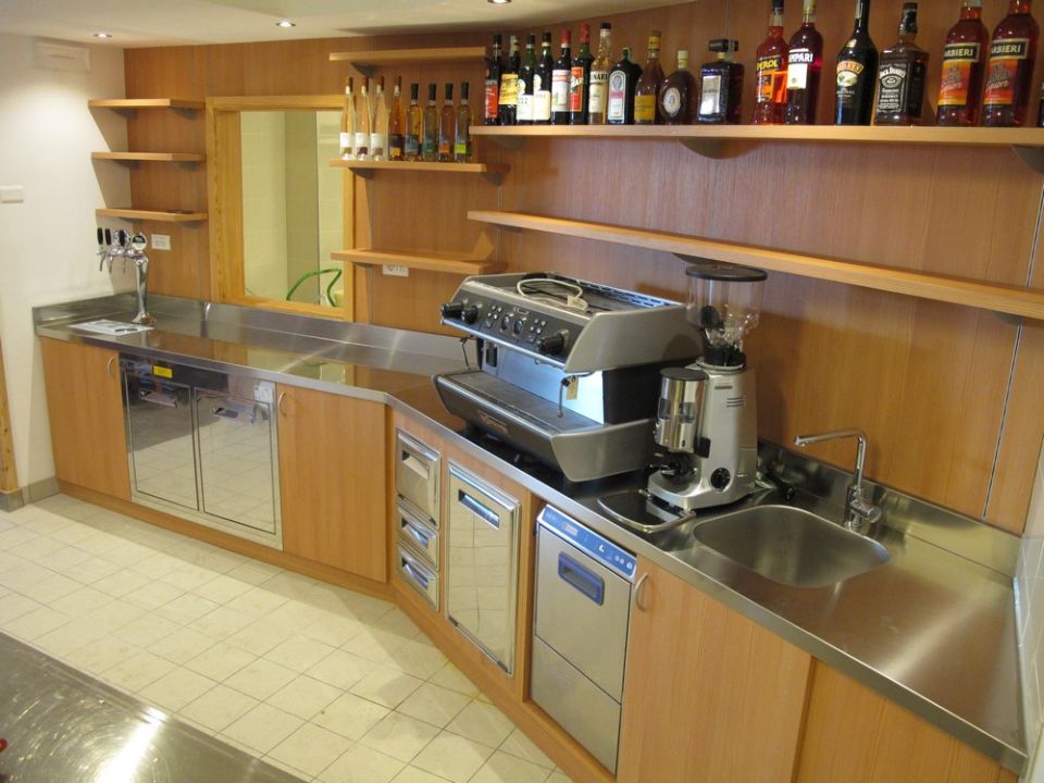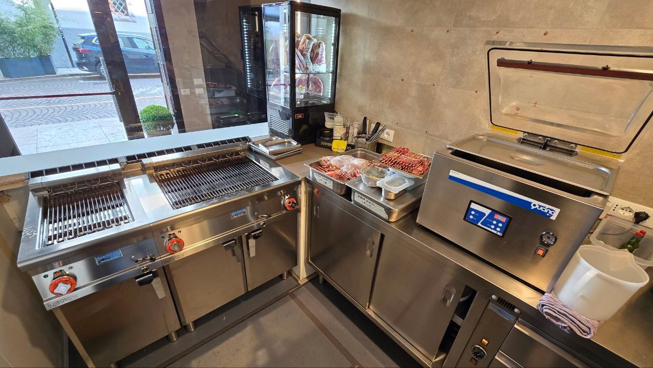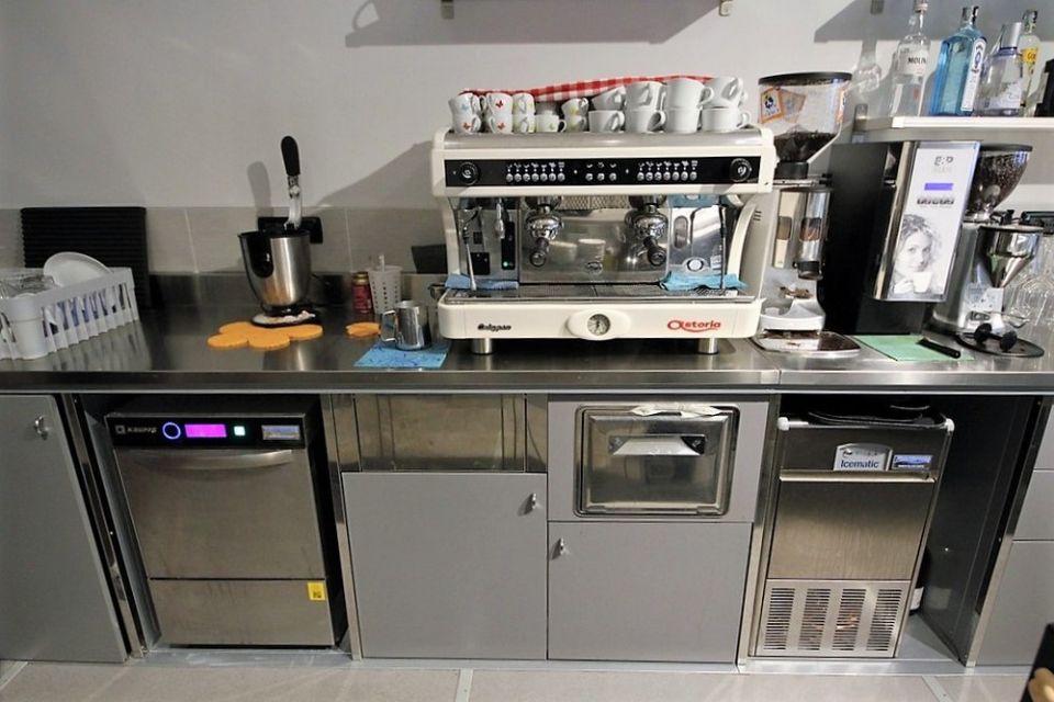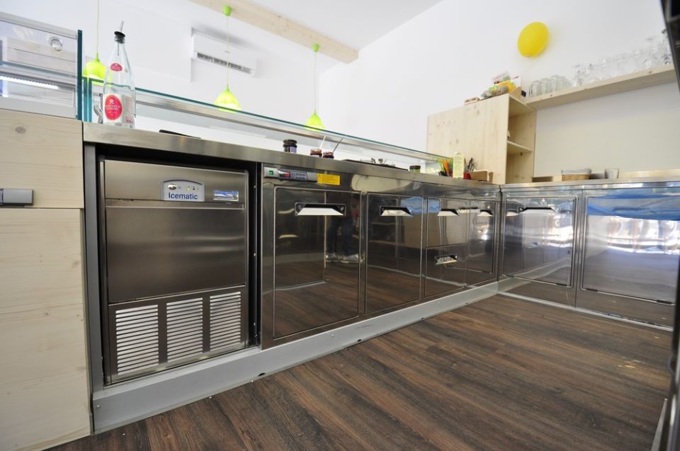 Banchi e retrobanchi, vetrine e drop-in IFI, fabbricatore di ghiaccio Castelmac Spa, lavastoviglie Krupps, impianto di climatizzazione Ar Therm, montapanna Bravo S.p.A.