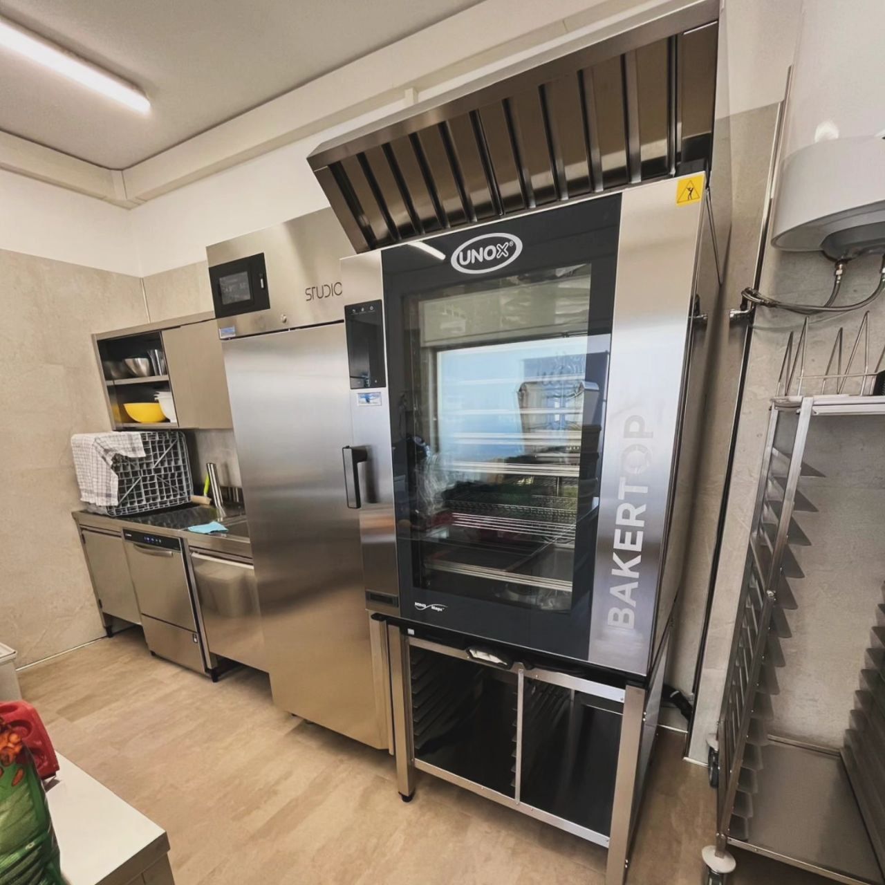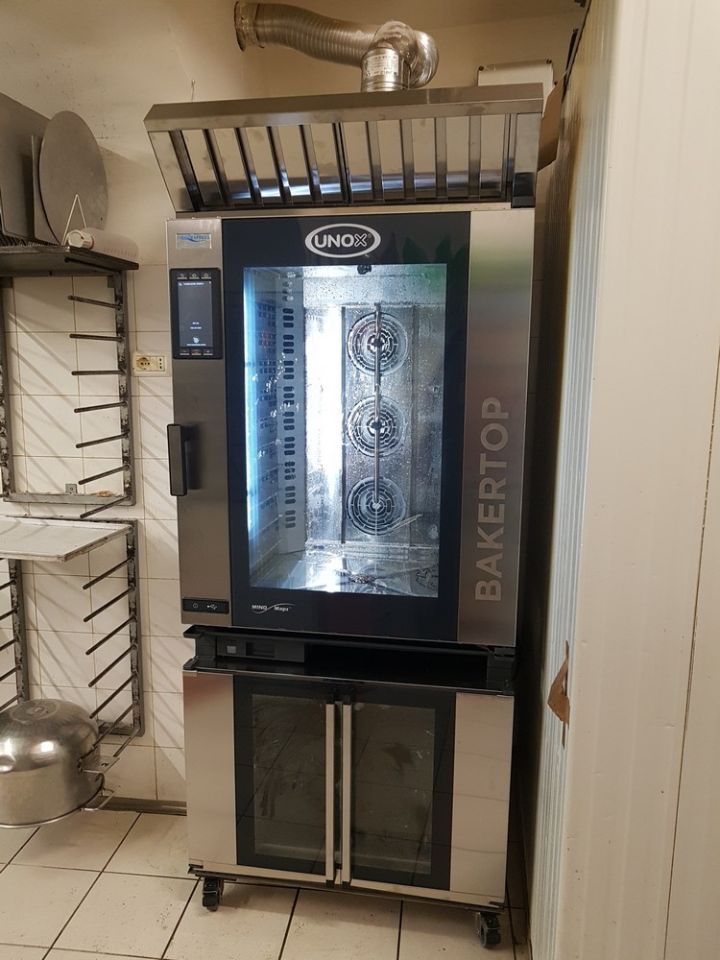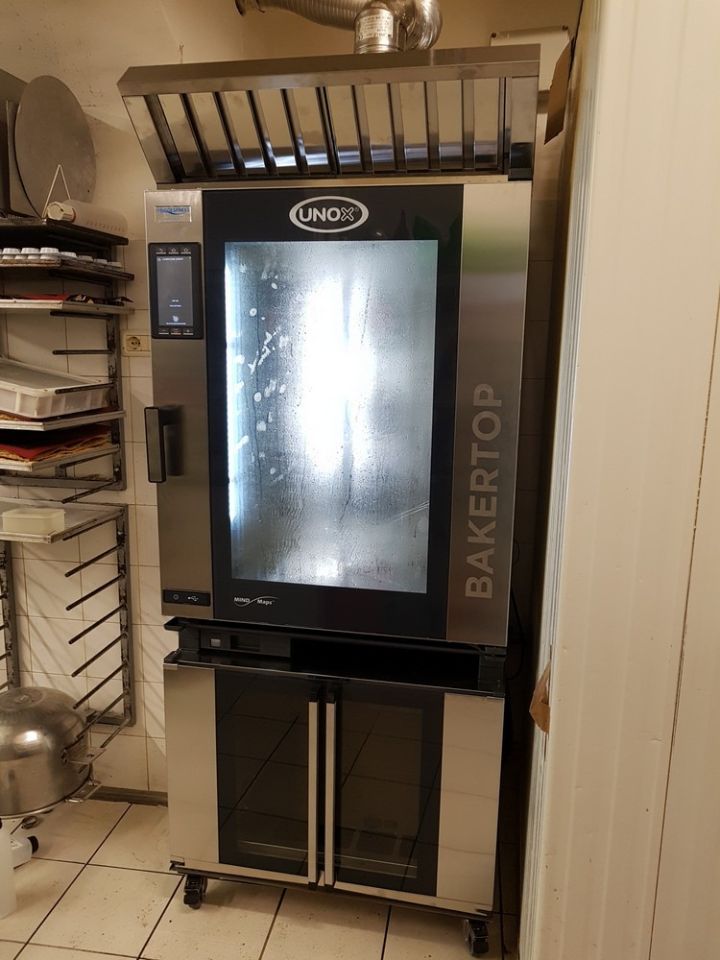 Installazione nuovo forno per pasticceria Unox Ovens, capacità 10 teglie 600x400, con lievitatore inferiore e cappa superiore, e nuovo abbattitore Studio 54 Refrigeration System c/o Casa del Cioccolato a Trento.