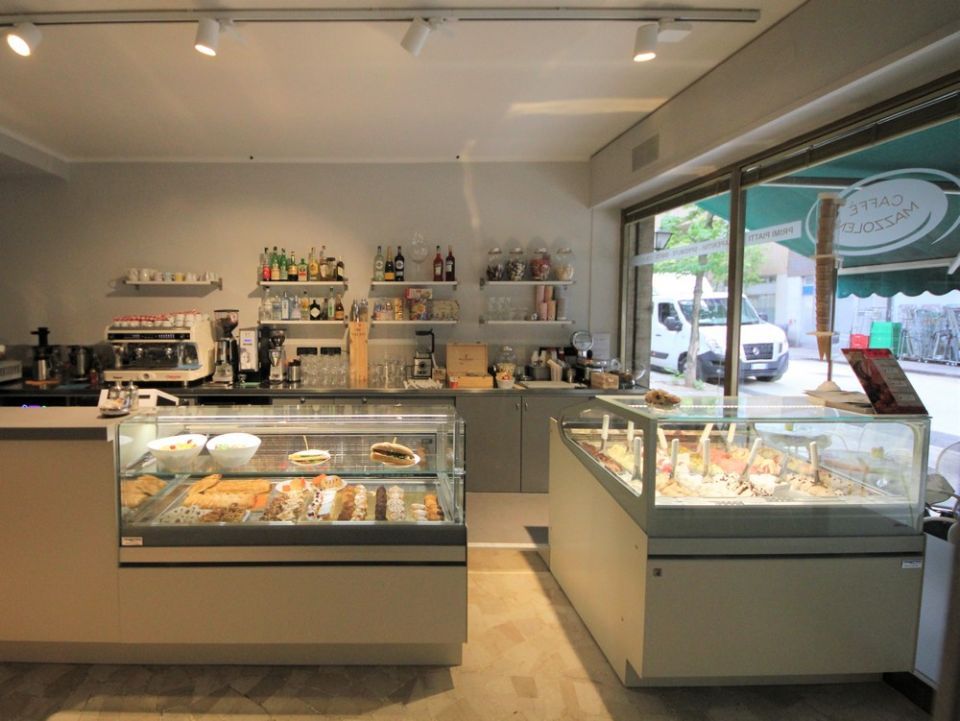 Consulenza e installazione nuovo arredamento al Bar Pasticceria Mazzoleni. Vetrina gelato, vetrina espositiva paste, banco bar e retro banco marchiato IFI, fabbricatore di ghiaccio Icematic, lavastobicchieri Krupps con controllo touch.